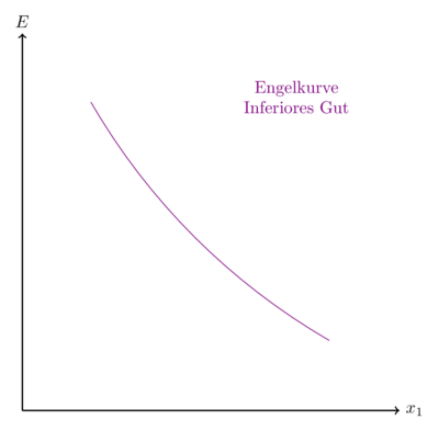 Die Nachfrage nach inferioren Gütern sinkt bei steigendem Einkommen und steigt, wenn das Einkommen kleiner wird. Die Einkommenselastizität der Nachfrage ist somit negativ.